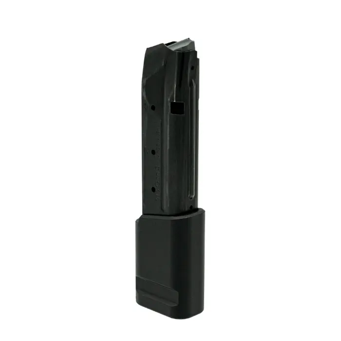 Shield Arms S15 Gen 3 15 round magazine with an installed Shield Arms anodized +5 magazine extension, for a total of 20 rounds.