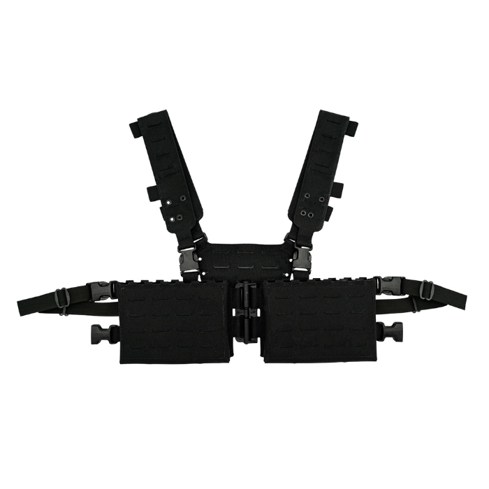 The Split Chest Rig (Base Kit), meticulously crafted and engineered to meet the demands of rugged mountainous terrain, offers a comprehensive tactical solution assembled with precision, including: