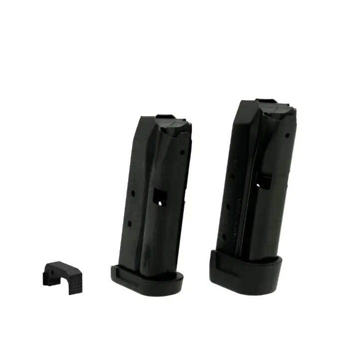 9-round capacity, extended with pinky extension, heat-treated steel construction |
